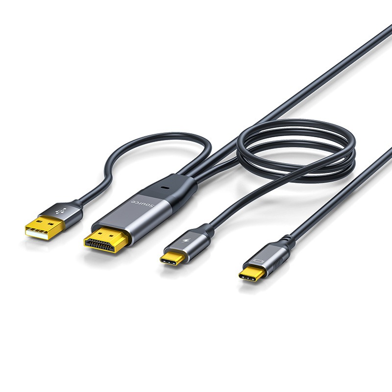 注意:如果使用了双头Type-c一线通就需要用高功率的充电头以便于反冲给其他设备。自带的充电头适合hdmi模式的连接供电。(白色线材的双c先是充电线)